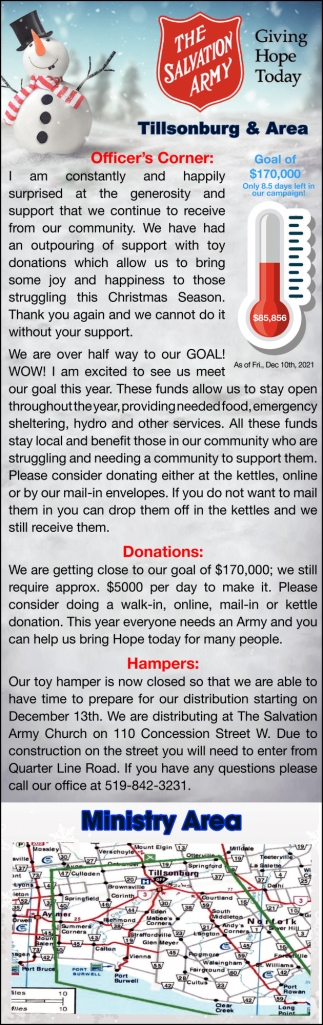 . The Salvation Army Fundraisers Ads from The Norfolk and Tillsonburg News