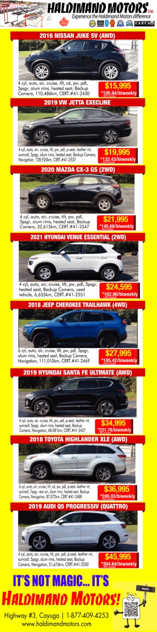 Ads for Haldimand Motors Ltd. in Cayuga, ON