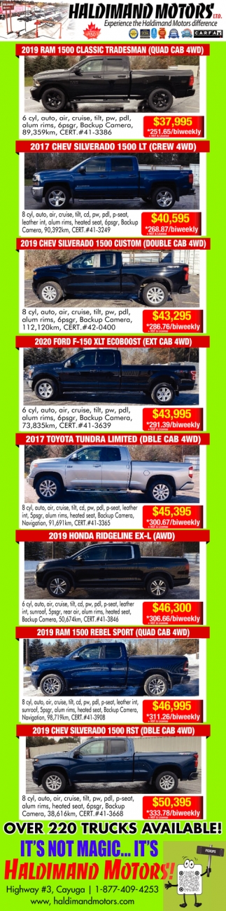 Ads for Haldimand Motors Ltd. in Cayuga, ON