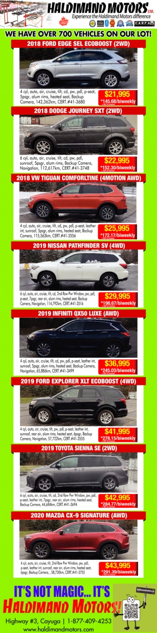 Ads for Haldimand Motors Ltd. in Cayuga, ON