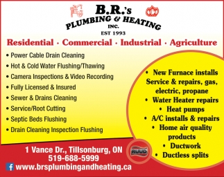 Ads for B.R.'s Plumbing & Heating in Tillsonburg, ON