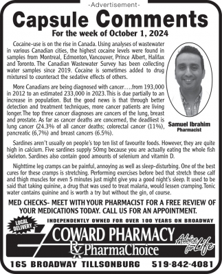 . Coward PharmaChoice Pharmacy Ads from The Norfolk and Tillsonburg News