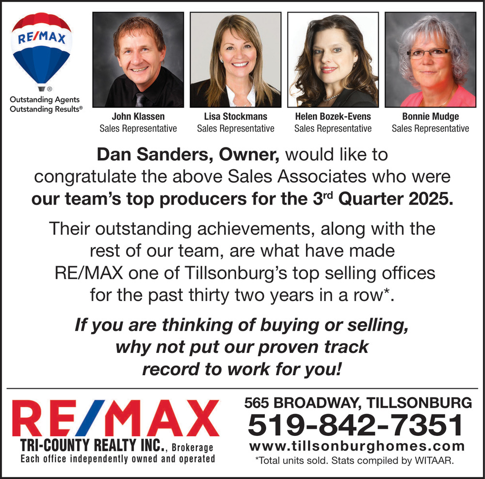 Oct 09, 2025. RE/MAX Tri- County Realty Inc. Real Estate Ads from The Norfolk and Tillsonburg News