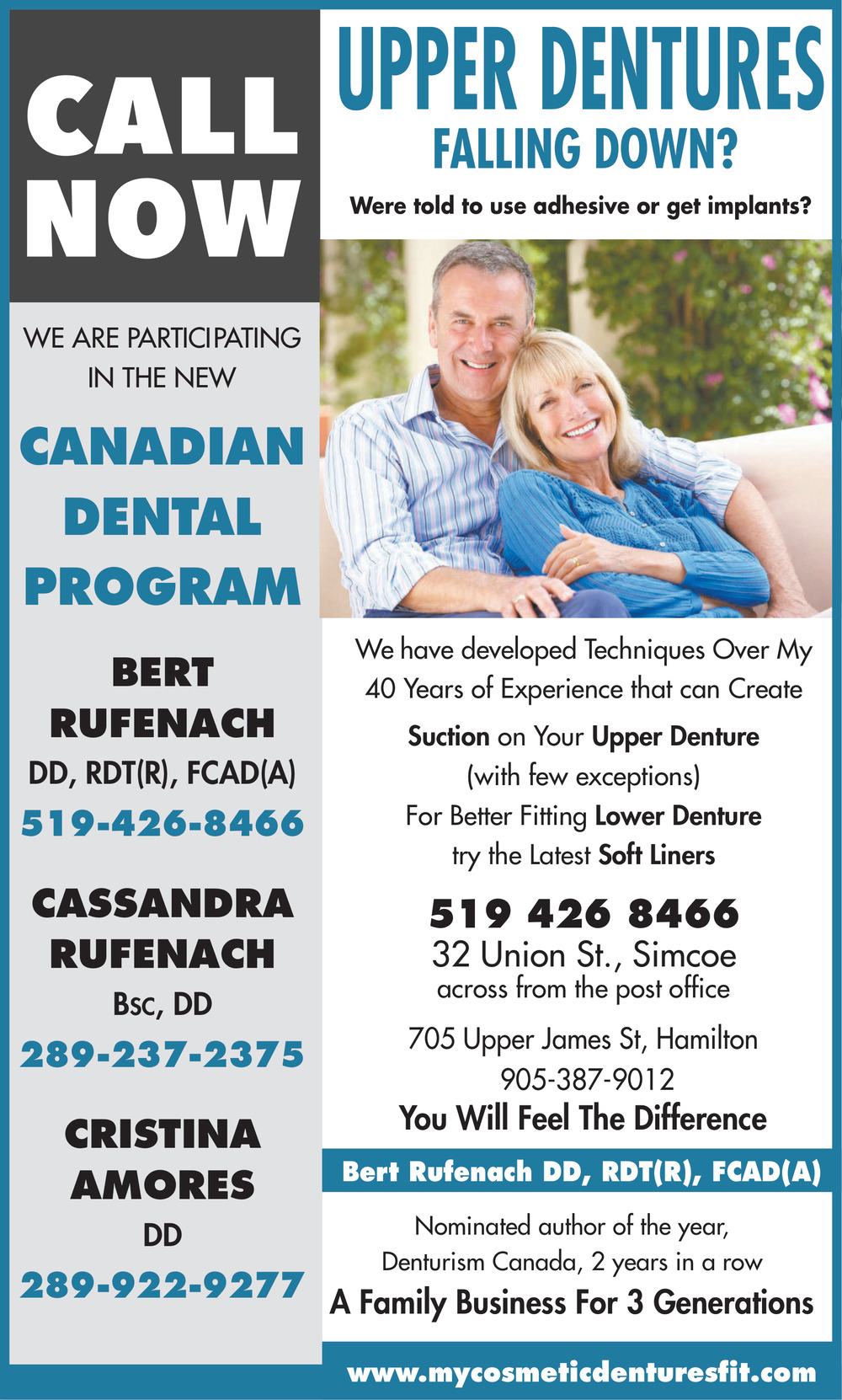 Ads for Bert Rufenach DD, RDT(R), FCAD (A) in Simcoe, ON