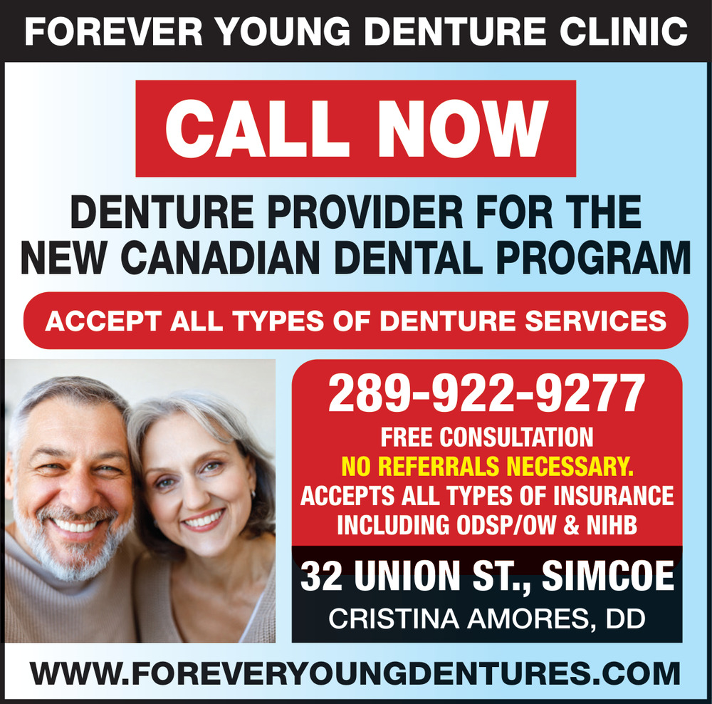 Ads for Forever Young Denture Clinic in Simcoe, ON