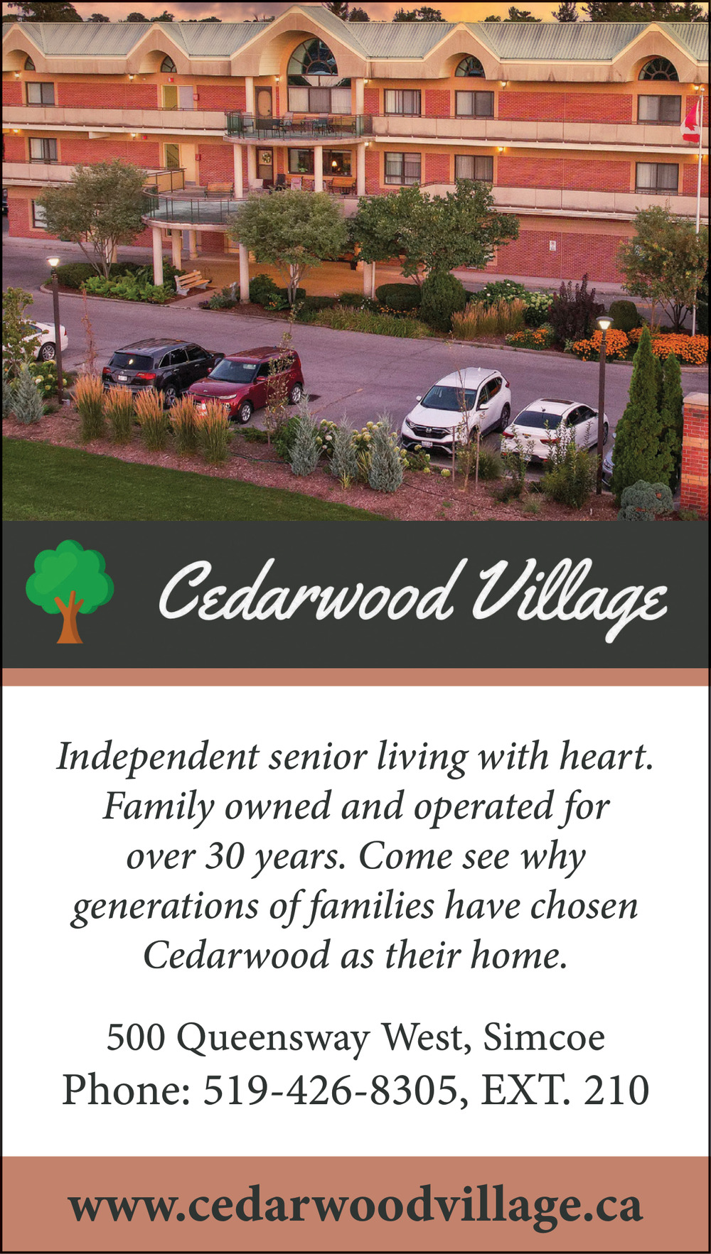 Nov 13, 2025. Cedarwood Village Senior Living Ads from The Norfolk and Tillsonburg News