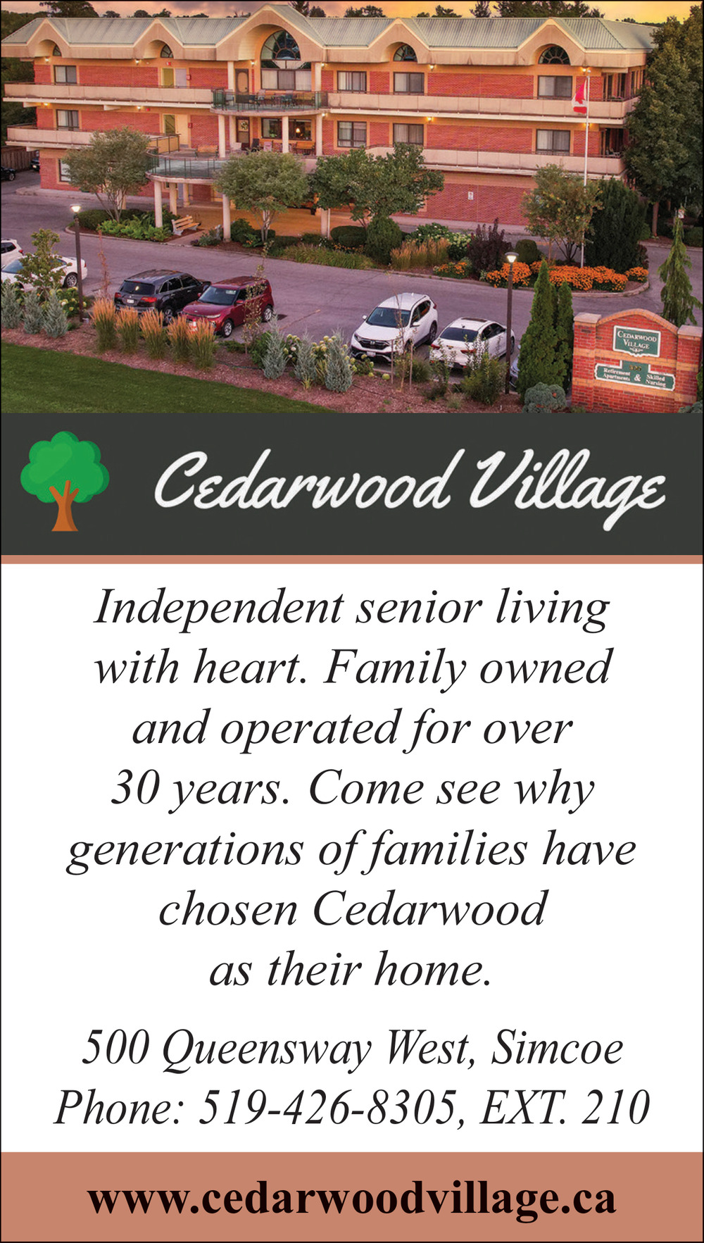 Nov 20, 2025. Cedarwood Village Senior Living Ads from The Norfolk and Tillsonburg News