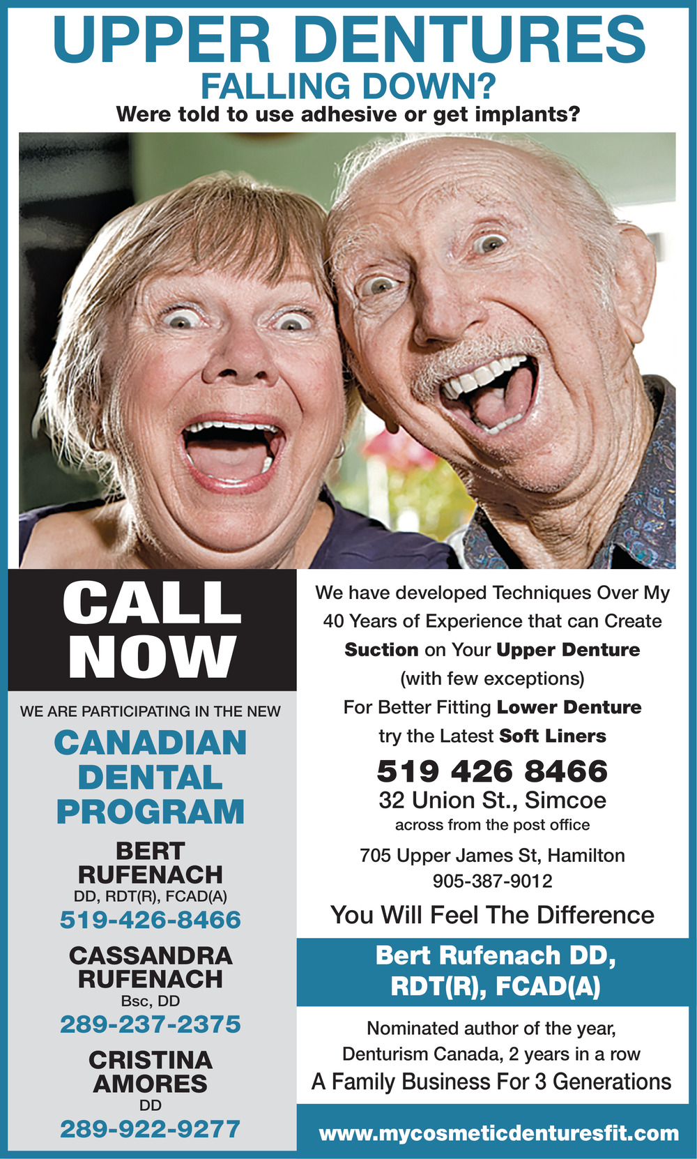 Ads for Bert Rufenach DD, RDT(R), FCAD (A) in Simcoe, ON