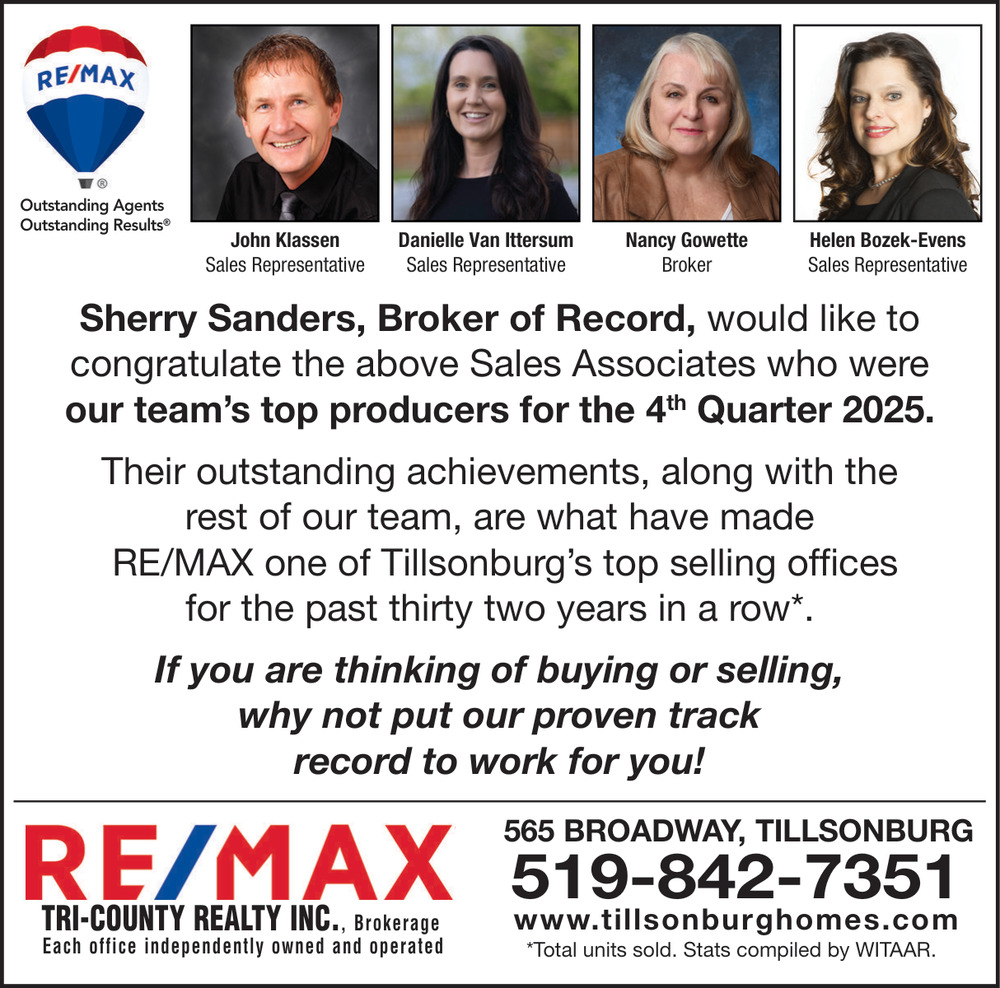 Jan 15, 2026. RE/MAX Tri- County Realty Inc. Real Estate Ads from The Norfolk and Tillsonburg News
